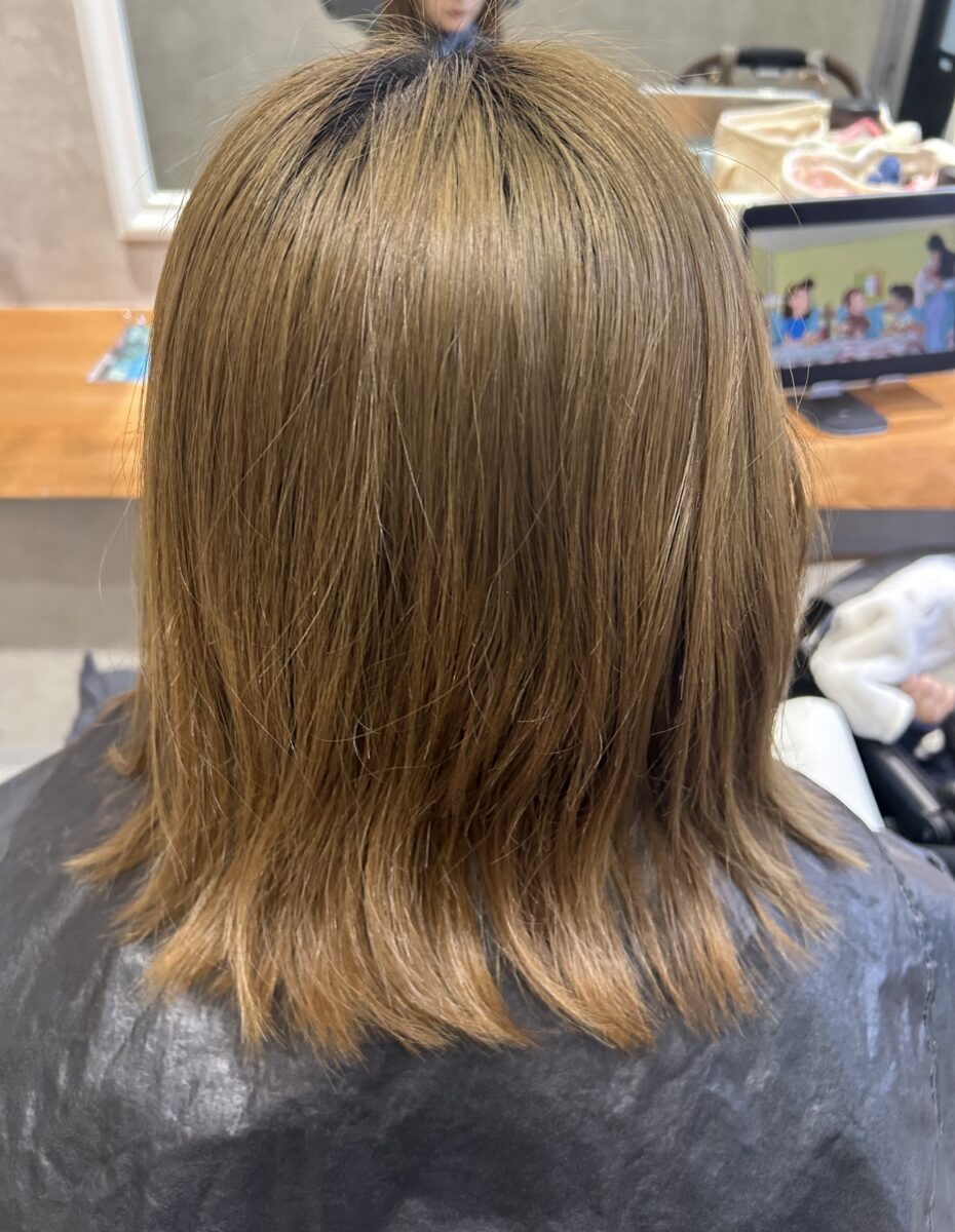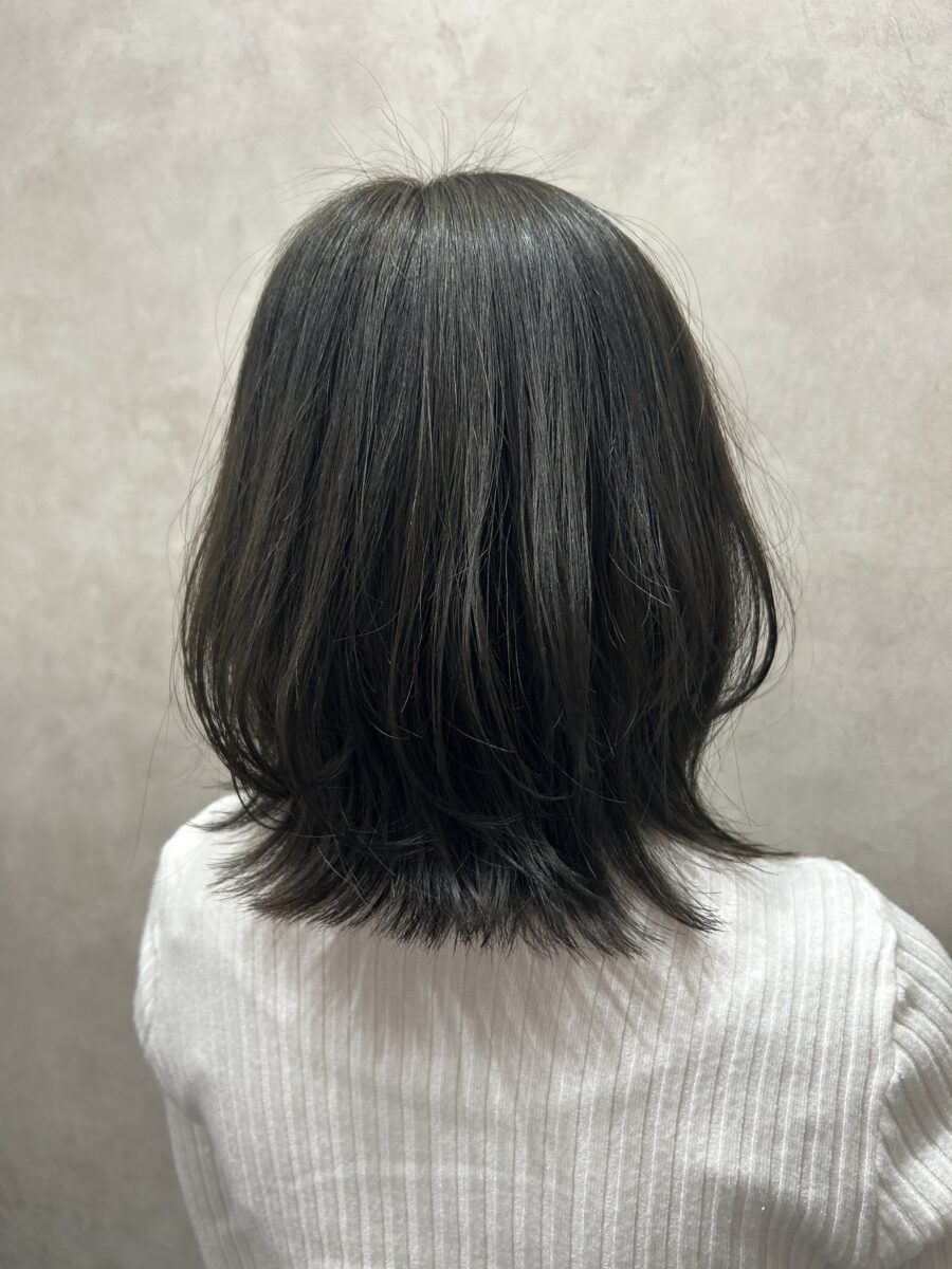 オリーブグレージュは透明感もでて重たくなりすぎないカラーになっております