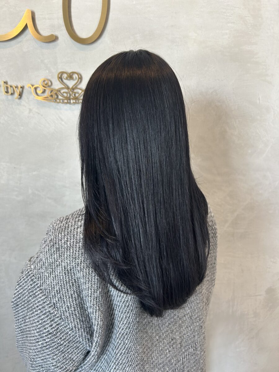 真っ黒ではないので、光のあたり具合によって透け感が出てツヤツヤな髪質に見えるのでおすすめです✨✨✨