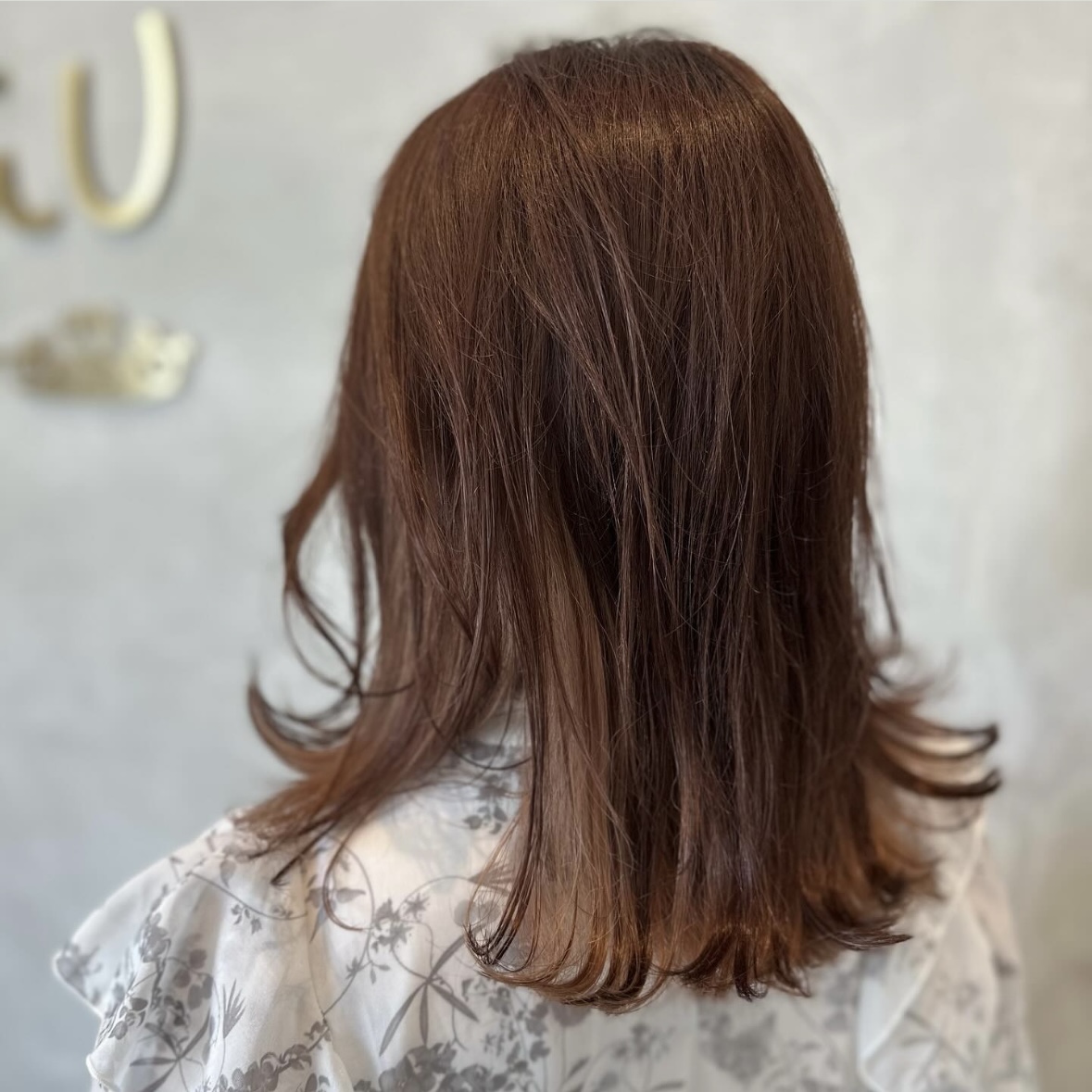 ダメージの少ないブリーチで、インナーカラーに挑戦してみませんか?😊しっかりトリートメントもして仕上げるので、艶感はもちろん、手触りもとてもなめらかです💐✨また、ホームケア方法、おすすめスタイリング方法もしっかりお伝えしています🌱