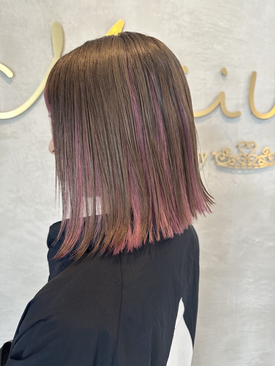 今回紹介するのはインナーカラーです✨表面のカラーからチラ見えするピンクカラーがとても可愛いですワンカラーで飽きてしまい、いつもと違う雰囲気を出したい人おすすめです♪インナーの色を変えるだけでも雰囲気がガラッと変わります🤩